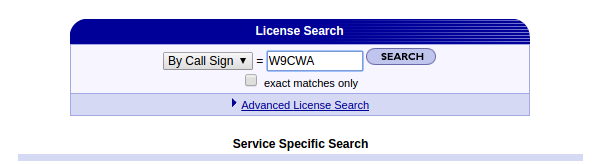 In the lower portion of the next page, a list of your license call sign(s)